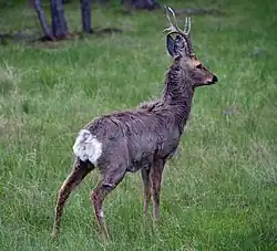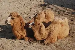 Boar, elk, ibex, and roe deer were commonly depicted and their remains have been recovered at Kurumchi settlements; while sheep bones are present at Olkhon Island sites.[71] Highly stylized bird carvings were likely inspired by geese, swans, and other waterfowl. Cattle and horse bone fragments were recovered at Kurumchi sites and common subjects in cliff artwork. Equestrian herds maintained by the Kurumchi were speculated to originate from the Yenisei steppe and not the Mongolian Plateau.[65] The appearance of Bactrian camel drawings demonstrated their commercial significance and possible ties to the steppe cultures of Inner Asia.[19] Certain figures are depicted wearing possibly chainmail.[72] Hunting scenes show figures using lassos and nets, both of which were employed by various steppe cultures. According to Okladnikov neither tool was used in Baikalia prior to the Kurumchi.[73]
