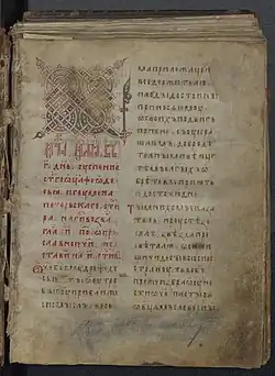 At the beginning of the 15th century, at the behest of Bishop Arsenius of Tver (formerly living in the Kyiv Monastery of the Caves), a new edition of the Patericon was compiled.[11] This text, although linguistically retaining the characteristics of the original, for reasons unknown, makes cuts in the text, removing both the Epistles and fragments of narratives (including the entire section dedicated to Alimpius).[12] However, it retains some works authored by the monk Nestor the Chronicler, unrelated to the original Patericon.[12]