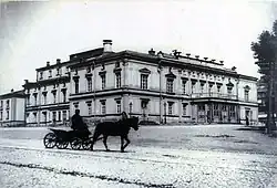 The old theatre was eventually replaced by the City Theatre, which was designed by the Russian architect Ivan Strom.[4] The City Theatre opened in 1856, and was until 1863 leased to Russian, Ukrainian, or Polish theatrical companies, before being used by an Italian opera company.[5] The opera house was located at the junction between Volodymyrska Street and Bohdana Khmelnytskoho Street.[1]
