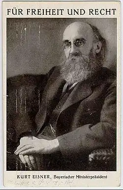 Bavarian Minister-president Kurt Eisner in January 1919. - December 1918: Germany has lost the First World War, food is running short, and the Spanish flu keeps killing large numbers of people. When Karl Grandauer comes back to Munich, he finds his family's old apartment inhabited by strangers; his father Ludwig has died from stomach ulcers, his brother Adolf has joined a free corps, and his sister Luise is married to baker Max Kreitmeier, who lost a leg in combat. The couple gives Karl a warm welcome, Max opens a bottle of wine, and they invite him to stay with them as long as necessary.