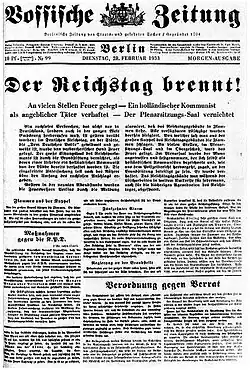 - ^ “Er erklärte ausdrücklich, dass für ihn der Staatsbürger jüdischen Glaubens genau so Staatsbürger sei wie der nichtjüdischen Glaubens, und dass sein Leben und Eigentum genau so zu schützen seien.” C. V.-Zeitung, Berlin, March 16th, organ of the Central-Verein deutscher Staatsbürger jüdischen Glaubens e. V., cited thru Wieland Eschenhagen (ed.), Die Machtergreifung. Tagebuch einer Wende nach Presseberichten vom 1. Januar bis 6. März 1933, Darmstadt/Neuwied 1982, p. 195.