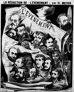 The idea for L'Événement was conceived in the autumn of 1870 but was delayed due to the upheavals of the Franco-Prussian War and the Paris Commune. The newspaper was launched on 7 April 1872.[2] Its founders, Edmond Magnier and Auguste Dumont, were former contributors to Le Figaro.[3][4] Magnier initially took on the role of editor-in-chief and later also became the administrative director, a position relinquished by Dumont in December of that year.[5]
