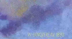 L'Amour et Psyché, enfants is an oil painting executed by the French painter William Adolphe Bouguereau in 1890. It is currently in a private collection. It was displayed in the Salon of Paris in 1890, the year Bouguereau was President of the Société des Artistes Français.[1] The painting features Greek mythological figures Eros and Psyché, sharing an embrace and kiss. Bouguereau was a classical-style painter in the Neoclassical era of art. The painting is characterized by the frothy background the figures delicately stand on. It depicts the beginning of the forbidden romance of Cupid and Psyche, a popular subject at the time of execution.