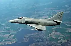 The United States delegation to NATO was worried with Portugal's capability in contributing to NATO operations and felt that the intention to purchase either the F-4E Phantom II or the F-5E Tiger II to replace the F-86F Sabre was inappropriate given that it felt that the A-7D Corsair II or the A-4M Skyhawk provided a better platform for the Portuguese role in an eventual conflict with the Warsaw Pact, which was to mainly protect the Atlantic Ocean resupply routes from the United States to Europe. Additionally, in case of an escalation of the Cold War, the air defense of Portugal and of the Iberian Peninsula was assigned to the Spanish Air Force and the United States Air Force's 401st Tactical Fighter Wing based at Torrejon Air Base, Spain.[18] In this context, both the Skyhawk and Corsair II were better suited for the naval attack role.