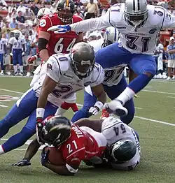Garber, Greg (December 7, 2006). "Thwack! Stiff-arm sticking it to NFL defenders". ESPN. Retrieved August 21, 2022. - ^ Lev, Michael (October 23, 2005). "Humble LaDainian Tomlinson putting up Canton-like number". Great Falls Tribune. Orange County Register. p. S7 – via Newspapers.com.