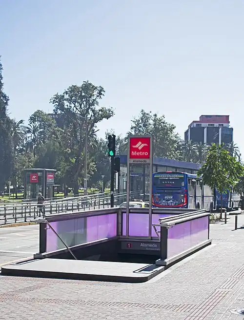 La Alameda is a Quito Metro station. It was officially opened on 21 December 2022 as part of the inaugural section of the system between Quitumbe and El Labrador. The revenue service started on 2 May 2023 and discontinued on 11 May 2023.[1] It resumed on 1 December 2023.[2] The station is located between El Ejido and San Francisco.[1]