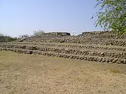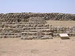 It is located northwest of the square, its base is 43 by 9 m; It is large and its construction is made with from overlaid stepped platforms similar to Structure 1. It has two entrances to the top; its elevation does not exceed 3 meters. There are holes at its base, probably to hold water or storage.