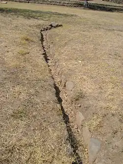 Next to Structure 2 are some petroglyphs. In this area are parts of the underground drainage system, made to collect and evacuate storm rain water. It was originally covered with stones. Its lay out follows the buildings arrangement.