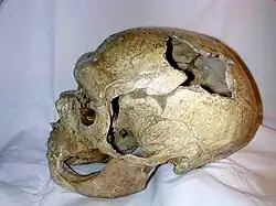 La Chapelle-aux-Saints 1 ("The Old Man") is an almost-complete male Neanderthal skeleton discovered in La Chapelle-aux-Saints, France by A. and J. Bouyssonie, and L. Bardon in 1908. The individual was in his 50s-60s at the time of his death.[1] He was in bad health, having lost most of his teeth and suffering from bone resorption in the mandible and advanced arthritis.