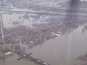 The La Crosse Rail Bridge is a swing bridge that spans the Mississippi River between La Crescent, Minnesota and La Crosse, Wisconsin. The first bridge in this location initially was designed and ready to build by June 1876, and was completed in November 1876 by the Milwaukee and St. Paul Railway, a predecessor of the Chicago, Milwaukee, St. Paul and Pacific Railroad.[3][4] It was later replaced in 1902.[5] It is at the Western end of the Canadian Pacific Railway Tomah Subdivision. Amtrak's Empire Builder and Borealis crosses this bridge.