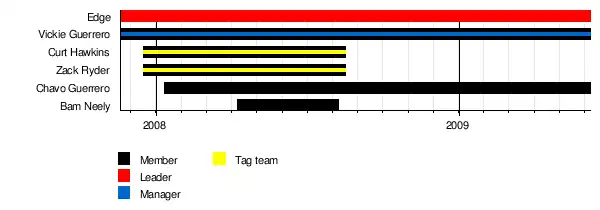 Members | Edge (leader) Vickie Guerrero Chavo Guerrero Curt Hawkins Zack Ryder Bam Neely |