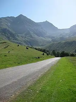 La Hourquette d'Ancizan (elevation 1,564 m (5,131 ft)) is a mountain pass in the French Pyrenees in the department of Hautes-Pyrénées, between the communities of Ancizan (east) and Campan (west).