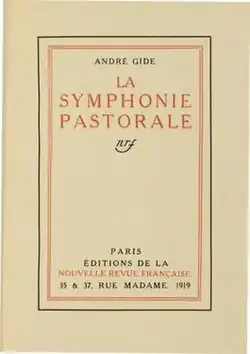 La Symphonie pastorale is a French novella written by André Gide first published in October and November 1919 in La Nouvelle Revue Française N° 73 and N° 74.