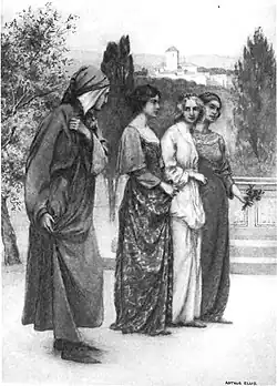 The Henry Holiday painting Dante and Beatrice (1883) is inspired by La Vita Nuova, as was Dante Gabriel Rossetti's The Salutation of Beatrice (1859). Rossetti translated the work into English in 1848 and used the character name Monna Vanna from it as a title for his 1866 painting Monna Vanna.