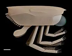 Ostenocaris | O. ribeti | Thylacocephala | Formerly classified as Clausocaris ribeti, much smaller than the type species of Ostenocaris[26] | ![]() | |