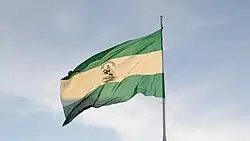 "La bandera blanca y verde" (pronounced [la βanˈdeɾa ˈβlaŋkaj ˈβeɾðe]; "The Green and White Flag") is the official anthem of Andalusia, an autonomous community of Spain, adopted under the first Andalusian Statute of Autonomy.[1] The lyrics were written by Blas Infante. The music for the anthem of Andalusia was composed by the former director of the municipal band of Sevilla, José del Castillo Díaz. The origins of the music are vaguely inspired on the Santo Dios, a religious cantic widely spread in rural Andalusia, usually sung by peasants while reaping their crops. It is believed that Blas Infante suggested the music to José del Castillo. The melody of the anthem is Castillo's original though. After the Spanish Civil War, the original music scores were destroyed, and only a manuscript for piano is conserved. The composer Manuel Castillo improved José del Castillo's version.[2]