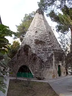 The mosque at 36°38′40″N 33°26′10″E / 36.64444°N 33.43611°E, is in the midtown between a castle and a caravansarai both of which are equally old as the mosque is. The plan of the mosque is square, which would later on be a popular style in Ottoman architecture. There is a big dome, which was constructed of flat face stones. The nartex had been covered by five small domes.[2] In the mosque courtyard, there are two small conical Mausoleums one original and one added by the Ottomans. According to Evliya Çelebi, the 17th century-Turkish travel writer, Laal Pasha's grave is in the first mausoleum.[3]