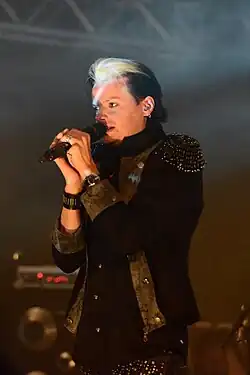 ![]() Lacrimosa live in 2015. L-R: Julien Schmidt (drums), Jay P. (guitar), Yenz Leonhardt (bass), Tilo Wolff (vocals), Henrik Flyman (guitar), Anne Nurmi (keyboard). | |