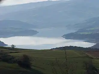 Lago di Occhito is a lake in the Province of Foggia (Apulia) and Province of Campobasso (Molise) in the south of Italy. Its surface area is 13 km2 (5.0 sq mi). The lake serves as a part of the border between Apulia and Molise. Lago di Occhito is a large artificial lake, created with a dam on the Fortore. It is approximately 12 km long and half belongs to the province of Campobasso and the remaining part to the province of Foggia. The municipalities overlooking the lake are Sant'Elia a Pianisi, Macchia Valfortore, Pietracatella, Gambatesa, Tufara, Carlantino, Celenza Valfortore and, San Marco la Catola.