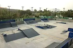 The Mei Foo skatepark is the largest skatepark in Hong Kong and also the most visited.[1] It contains two half pipes and several quarter pipes, single rails and fun boxes. Most of the ramps are higher than 6 ft (1.8 m). The skatepark has been visited by various professional skateboarders such as Chris Haslam, Terrell Robinson, and Mike Peterson. My Little Airport, a local indie band, made a song about it.