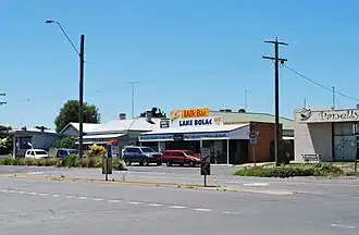 Lake Bolac is in the Western District region of Victoria, within the local government area of the Rural City of Ararat, 91 kilometres (57 mi) west of Ballarat. The town is situated on the shores of Lake Bolac, and the Glenelg Highway passes through the town.[9]