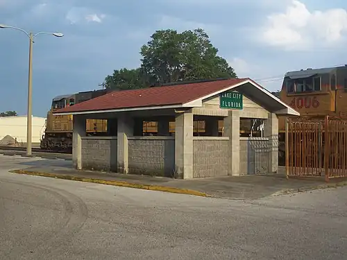 Lake City station is a former train station in Lake City, Florida. It was formerly served by Amtrak, the national railroad passenger system. Service was suspended after Hurricane Katrina struck the Gulf Coast in 2005. Lake City station is located 1,000 feet (300 m) east of a CSX Transportation freight depot.