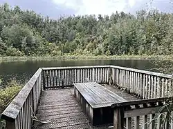 Currently a 750 m, 15-minute walk from a car park on State Highway 67, 8 km south of Little Wanganui, traverses a forested ridge to a viewing platform in the lake.[13] A second track leads from the car park to the stream.[14] The forest around the lake was gazetted as Lake Hanlon Amenity Area in 1998 by the Department of Conservation.[15]