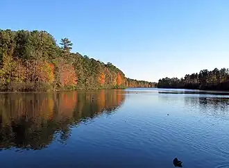 Lake Lynn is a man-made lake in Raleigh, North Carolina.[2][3] The lake was created for flood control purposes in 1976 by damming Hare Snipe Creek, a tributary of Crabtree Creek. The lake has an area of 55.7 acres (22.5 ha) and lies entirely within the city of Raleigh's 75-acre (30 ha) Lake Lynn Park. The park includes a 2.8 mi (4.5 km) paved trail around the lake (part of the Capital Area Greenway system), as well as a community center, playground, and tennis courts.