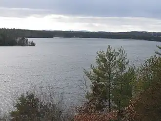 Lake Massabesic or Massabesic Lake[1] is a lake in southern New Hampshire, United States, covering about 2,560 acres (1,040 ha)[2] (equivalent to about 4 sq mi or 10 km2) within the city of Manchester and the town of Auburn. Because it provides drinking water for Manchester, swimming and water skiing are not allowed there.[3] Popular sports on the lake are sailing, fishing, and kayaking. The recreational trails along the lake provide views of the lake and the town of Auburn.