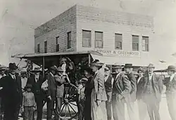 After Henry Flagler extended the Florida East Coast Railway (FEC) south from West Palm Beach to Miami in 1896, a land development scheme was created to plant a townsite between the railroad and the lake.[19]: 74 Purchasers of agricultural lots, most of which were located in modern-day Greenacres, would also receive a small 25 by 25 ft (7.6 by 7.6 m) lot within the city of Lake Worth.[21] The developer, Bryant & Greenwood, promoted the area to markets across the United States and Canada.[5]: 17 They proposed to name the town Lucerne,[22] but the United States Postal Service refused to accept the name because there already was a Lucerne post office, now a neighborhood in Miami Gardens. Therefore, the city founders changed the new town's name to Lake Worth.[23]: 29