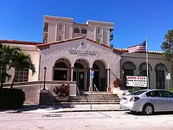 In the immediate aftermath of the storm, the Gulf Stream Hotel was converted to a makeshift hospital.[34]: 5 The devastation left Lake Worth without a functional center for city government, although records were mostly unscathed. Consequently, a temporary city hall was established at the Lauriston building.[41] The storm, combined with the Great Depression led to a severe economic decline within the community. Construction projects primarily shifted to repairing damaged buildings. However, there were a few conservation, construction, and New Deal projects during the 1930s.[5]: 16 This included when President Franklin D. Roosevelt's Works Progress Administration built the striking,[5]: 18 Moorish-styled "city gymnasium" on the corner of Lake Avenue and Dixie Highway. The building today serves as the Lake Worth Beach City Hall.[5]: 8