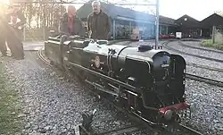A dual gauge 10+1⁄4 in (260 mm) / 7+1⁄4 in (184 mm) light railway was established in the park in 1992, originally as a temporary layout.[3] A more permanent track was laid down in 1993, as the railway company was granted a three-year lease.[3] Five years later, a longer lease was negotiated and construction began on the two stations, Eastleigh Parkway and Monks Brook.[3] They were opened in 1999, although further work on the layout itself was carried out in 2000.[3] A tunnel was added in 2003, and Eastleigh Parkway station was extended in 2005 with the addition of a café and shop.[3]