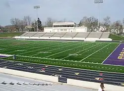 Lakewood High School's athletic field was built in 1941 and is located just south of the school building in the school's athletic complex. The stadium is used for numerous sporting events, including playoff and home football games for nearby St. Edward High School football team, which is located a few blocks away. The football field was first renovated in 1986-7, with the addition of an all-weather track and a sand-ballasted synthetic surface,[6] and again, in 2007 with the installation of FieldTurf and in 2014, First Federal of Lakewood, a local bank, agreed to pay the district $320,000 for the naming rights. In 2024, a jumbotron replaced the original scoreboard. It can seat 8,000 people with standing room for an additional 2,000.[7]