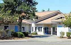 Lakewood School District 306 was formed in 1914 by consolidating three smaller school districts formed between 1891 and 1909. School District 45, the oldest and largest district in the area, was formed on February 28, 1891 and served 40 students at English. School District 65 was formed on November 12, 1892 and served 30 students in the Lake Goodwin area. School District 102, the newest and smallest district in the area, was formed on September 25, 1909 and served 20 students in Smokey Point.[2] The new district served 70 students from grades one to eleven in a three-story schoolhouse and sent its high school students to the nearby Arlington School District beginning in 1958. The schoolhouse was demolished in 1958 and students were moved to a new campus consisting of two wings and eight classrooms, later expanded to include a gymnasium and eleven classrooms by 1966. The campus was renovated into Lakewood Elementary School while older students were moved to an adjacent junior high school, now Lakewood Middle School, in 1972. The school district built its first high school, now Lakewood High School in 1983 and graduated its first senior class the following year.[3][4] The school district re-organized its schools in 1988, converting Lakewood Elementary into Lakewood Primary School, serving grades K–3, and converting the junior high school into Lakewood Intermediate School, serving grades 4–6. A bond issue was passed in 1992 to fund the construction of English Crossing Elementary School, opened in 1995 serving grades 3–5.[5] The primary school was renamed back to Lakewood Elementary and served grades K–2, while the intermediate school was converted back to Lakewood Middle School after an extensive remodeling, serving grades 6–8.[6][7] Cougar Creek Elementary School was completed in 2003 to supplement the two other elementary schools by serving grades K–5.[8][9] All three elementary schools were re-organized in 2011 to serve grades K–5 in all three schools, with Lakewood Elementary retaining its preschool program.[10]