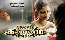 Lakshmi Kalyanam (transl. Lakshmi Wedding) is an Indian Tamil-language soap opera starring Yuvarani, Deepika, Sathiya Sai, Ashwin Kumar and Shyam. It is a remake of the Telugu-language television series of the same title which has aired on Maa TV from 2016. It was broadcast on Vijay TV on Monday to Friday from 7 February 2017 to 23 June 2017 at 21:30 (IST) for 98 Episodes.[1] It replaced Kalyanam Mudhal Kadhal Varai.[2]