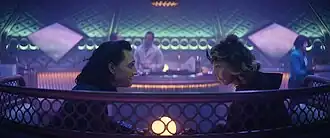 Ali was tasked with much of the series world-building in the episode, and was not given any predetermined guidance or notes from Marvel on what they wanted. She chose the name Lamentis since she was "a deeply depressing person", finding "something poignant and beautiful about lamenting something".[7] Discussing the Variant using the alias "Sylvie", Sophia Di Martino said while the character was inspired by Sylvie Lushton / Enchantress and Lady Loki from Marvel Comics, she is a different person with a different backstory from those characters as well as Hiddleston's Loki.[8][9] "Lamentis" establishes that Loki and Sylvie are bisexual.[10] Herron, who is also bisexual, said acknowledging this was very important to her since this is part of "who he is and who I am" and called it a "small step".[11] She continued that the moment did not want to "feel like we were just wedging something in" and the scene where it occurred was "the right place for that conversation to happen". This is the only time in the series this is acknowledged, with Herron hoping it would "pave the way for deeper exploration".[12] Di Martino stated she and Hiddleston tried to make the moment like a "natural conversation between two acquaintances" without giving the statement "too much weight", while still understanding the importance of what the moment would be.[9]