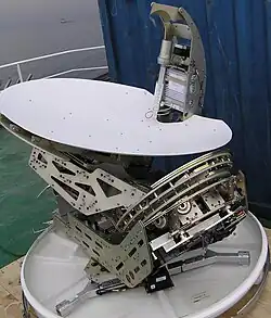 - The mobile equipment contains : external devices (satellite antenna and mounts) powered by three independent motors, fix support (mount) internal equipment (satellite VSAT terminal and accessories) completely automatic, for the connection with the satellite.