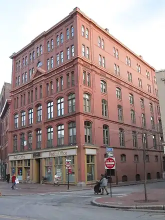 The Lancaster Block is an historic commercial building in downtown Portland, Maine. Located at 50 Monument Square, it is a fine local example of commercial Romanesque Revival architecture. It was built in 1881 and enlarged in 1908; it is named for Lancaster, New Hampshire, the hometown of its builder, J. B. Brown.[2] it was listed on the National Register of Historic Places in 1982.