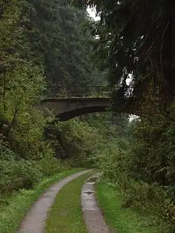 The old trackbed of the Innerste Valley Railway is now a walking and cycle path in summer and a cross-country skiing trail in winter. The cycle path is part of the Lower Saxon long-distance route (RFW No. 5), the Weser-Harz-Heide cycle route, which runs from the Lüneburg Heath over the Harz to Rhumequelle, then via Göttingen to Hann. Münden. The northern portal of the tunnel is blocked with rubble. At the southern end there is a memorial tablet on the right-hand side.
