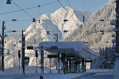Langen am Arlberg railway station (German: Bahnhof Langen am Arlberg) is a railway station in the village of Langen am Arlberg in the Klostertal (Bludenz district) in the westernmost Austrian state of Vorarlberg. It is located on the Arlberg railway line between Innsbruck and Bludenz, near the western portal of the Arlberg Tunnel.[1]
