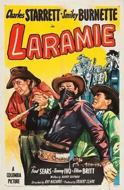 Laramie is a 1949 American Western film directed by Ray Nazarro and written by Barry Shipman. The film stars Charles Starrett, Fred F. Sears, Tommy Ivo, Elton Britt and Smiley Burnette. The film was released on May 19, 1949, by Columbia Pictures.[1][2][3] This was the thirty-seventh of 65 films in the Durango Kid series.[4]
