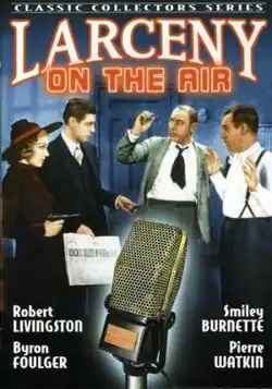 Larceny on the Air is a 1937 American thriller film directed by Irving Pichel and starring Robert Livingston, Grace Bradley and Willard Robertson. It was produced and distributed by Republic Pictures.