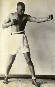 Gains was considered one of the top heavyweights of his era, but was denied the opportunity to fight for the British Championship and the World Championship due to the rules against black boxers competing for the titles, instead competing for the "Coloured Heavyweight Championship of the World", a title that he won in 1928 and 1935.[8][19][20] His income from boxing dwindled after 1934 and in 1937 he was declared bankrupt.[21] In December 1938 he defeated Welsh champion George James on points.[22] In 1939, with the advent of World War II, Gains joined the British Army as a physical training instructor.[9] He served as a sergeant major in the Pioneer Corps in the Middle East.[23] His last fight was a defeat to Jack London in June 1942, held to raise funds for the RAF Benevolent Fund.[24]
