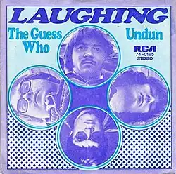 "Laughing" is a popular song by Canadian rock band The Guess Who. It peaked at #1 on the Canadian Singles Chart for a single week[2] and at #10 on the United States' Billboard Hot 100, becoming the band's second single to reach the Top 10 on the latter.[3] It became their second of three gold records in the United States and also made the Top 20 on singles charts in New Zealand and South Africa.