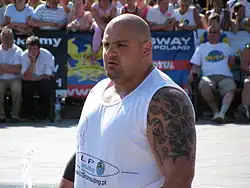 He has made the finals of the World's Strongest Man competition 5 times, winning fourth place in 2011.[3] He also won fifth place at the 2018 World's Ultimate Strongman,[4] and seventh place at the 2012 Arnold Strongman Classic.[5] He is also the winner of England's Strongest Man (2009) and Britain's Strongest Man (2012, 2013) at the national circuit.