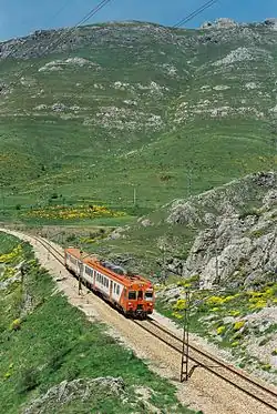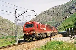 In 1955, Renfe completed the electrification of the entire route, between Ujo and Gijón (January 4) and between León and Busdongo (November 23).[17] Between 1966 and 1968, centralized traffic control was implemented on the line and on its branches to San Juan de Nieva and El Entrego, totaling 219 km of track, with a command post in Oviedo.[18]