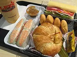 Lee's Sandwiches International, Inc., is an American fast food restaurant chain serving Vietnamese cuisine headquartered in San Jose, California, with locations in several states and in Taiwan. Lee's Sandwiches specializes in bánh mì, "European-style" baguette sandwiches, Vietnamese iced coffee, and Vietnamese dessert chè.[6] It is credited with popularizing Vietnamese sandwiches and iced coffee among mainstream American consumers and inspiring several other Vietnamese-owned bakery chains.[7][8][9]