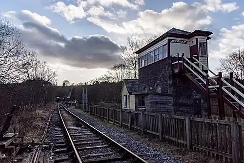 Leek Brook railway station was opened by the North Staffordshire Railway (NSR) in 1904.[1] It consisted of an island platform with two faces on the line from Stoke-on-Trent and Leek and a single platform on the down (i.e. Leek bound) direction of the Churnet Valley Line.[2]