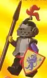 The sets that would eventually form the basis of the Crusaders were released the same year as the Black Falcons in 1984. The Crusaders shield had either a blue lion against a yellow background or a yellow lion against a blue background, both with a red border. The minifigures that were associated with these shields invariably had blue or red pants and red torsos with blue sleeves, and their helmets were usually gray. They had shield-like emblems on their torsos, one which was a yellow lion set against blue, while the other emblem had the crossed axes (two black and gold axes crossing each other against a black and gold background, split down the middle, with a red border). A few of these sets were later inducted into the Crusaders theme, so some fans retroactively consider all such sets to be Crusaders sets. As with the Black Falcons, Lego never officially named this faction for some time, although catalogues in Australia used the name Lion Knights while Canada used Lion Crest. The 1992 United States and Canadian catalogue officially established the faction as the Crusaders.[4]