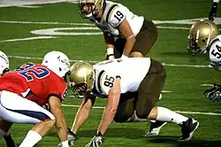 Lehigh players (right) line up on defense during a game against Liberty in 2012.